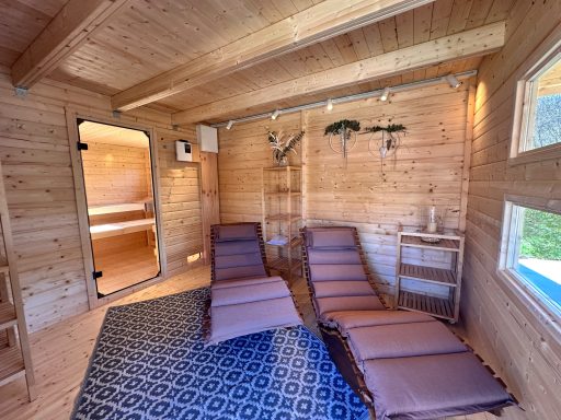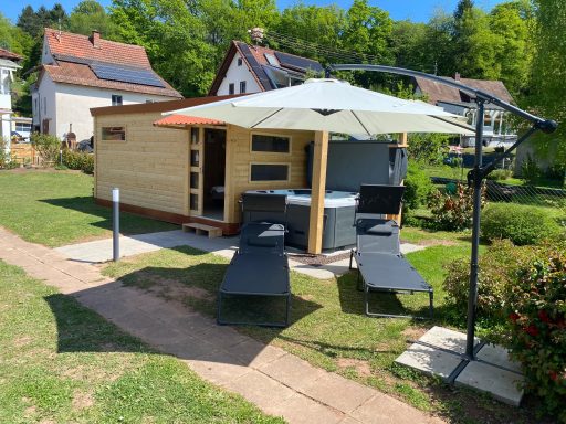 Entspannung in Sauna und Whirlpool im Garten darf natürlich nicht fehlen, diese dürfen von all unseren Gästen genutzt werden. Lauschen Sie nach dem Saunagang im Liegestuhl dem plätschern des Baches und genießen den Blick in den Pfälzer Wald.